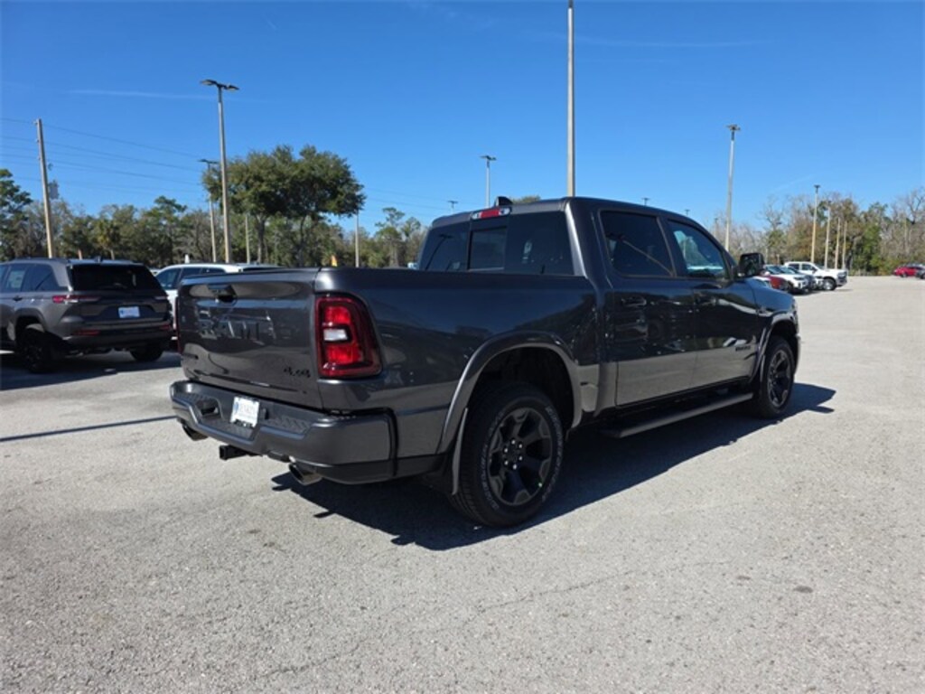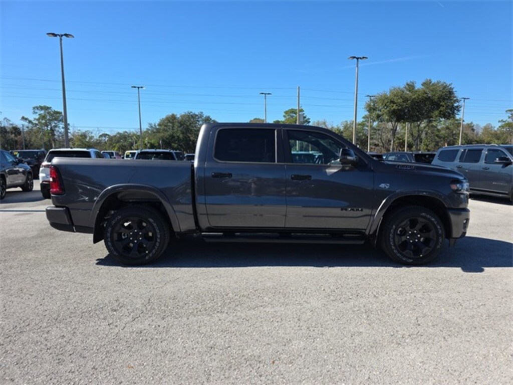 This vehicle comes equipped with Big Horn Level 2 Equipment Group (115V Auxiliary Power Outlet, 115V Auxiliary Rear Power Outlet, 12" Touchscreen Display, 2nd Row in Floor Storage Bins, 3 Rear Seat Head Restraints, 4 Way Front Headrests, 400W Inverter, 4G LTE Wi-Fi Hot Spot, 9 Amplified Speakers with Subwoofer, Air Conditioning ATC with Dual Zone Control, Apple CarPlay, Auto Power-Folding Mirrors, Auto-Dimming Exterior Driver Mirror, Auto-Dimming Rear-View Mirror, Black Exterior Mirrors, Black Premium Power Mirrors, Body Color Fender Flares, Bucket Seats, Center Console Parts Module, Cluster 7.0" TFT Color Display, Configurable Drive Mode, Connected Travel and Traffic Services, Connectivity - US/Canada, Convex Wide-Angle Exterior Mirror Insert, Deluxe Cloth Bucket Seats, Disassociated Touchscreen Display, Exterior Mirrors Courtesy Lamps, Exterior Mirrors with Heating Element, Exterior Mirrors with Supplemental Signals, Front Seat Back Map Pockets, Full Length Floor Console, Global Telematics Box Module, Glove Box Lamp, Google Android Auto, GPS Antenna Input, GPS Navigation, HD Radio, Heated Front Seats, Heated Steering Wheel, Integrated Center Stack Radio, Integrated Voice Command with Bluetooth, Leather Wrapped Steering Wheel, LED Dome Lamp with on/Off Switch, LED Footwell Lighting, Manual Adjust 4-Way Front Passenger Seat, Media Hub with 2 Charge Only USBs, Overhead LED Lamps, Power 2-Way Driver Lumbar Adjust, Power Adjust 8-Way Driver Seat, Power Adjustable Pedals, Premium Overhead Console, Radio: Uconnect 5 Navigation with 12.0" Display, Rear 60/40 Folding Seat, Rear Center Armrest, Rear Power Sliding Window, Rear Window Defroster, Remote Tailgate Release, Security Alarm, SiriusXM Radio Service, SiriusXM with 360L, Steering Wheel Mounted Audio Controls, Sun Visors with Illuminated Vanity Mirrors, Universal Garage Door Opener, and USB Host Flip), Night Edition (Accent Color Door Handles, Accent Color Premium Power Mirrors, Accent Color Tailgate Handle, Anti-Spin Differential Rear Axle, Black Exterior Truck Badging, Black Headlamp Bezels, Black Interior Accents, Black Painted Exterior Mirrors Caps, Black Tail Lamp Bezels, Body Color Front Bumper, Body Color Rear Bumper with Step Pads, Dual Exhaust with Black Tips, Grille Black Surround Black Mesh, RAM Grille Badge - Black, and Wheels: 20" x 9.0" Aluminum Painted Clad), Quick Order Package 27Z Big Horn, 33 Gallon Fuel Tank, 4-Wheel Disc Brakes, 48V Belt Starter Generator, 6 Speakers, ABS brakes, Air Conditioning, Alloy wheels, AM/FM radio, Apple CarPlay/Android Auto, Auto High-beam Headlights, Brake assist, Bumpers: chrome, Cloth Bucket Seats, Compass, Delay-off headlights, Driver door bin, Dual front impact airbags, Dual front side impact airbags, Electronic Stability Control, Front anti-roll bar, Front Bucket Seats, Front Center Armrest w/Storage, Front fog lights, Front reading lights, Front wheel independent suspension, Fully automatic headlights, Heated door mirrors, Illuminated entry, Low tire pressure warning, Manual Adjust 4-Way Driver Seat, Manual Folding Exterior Mirrors, Occupant sensing airbag, Outside t Price includes: $3500 - 2026 National Retail Consumer Cash . Exp. 02/02/2