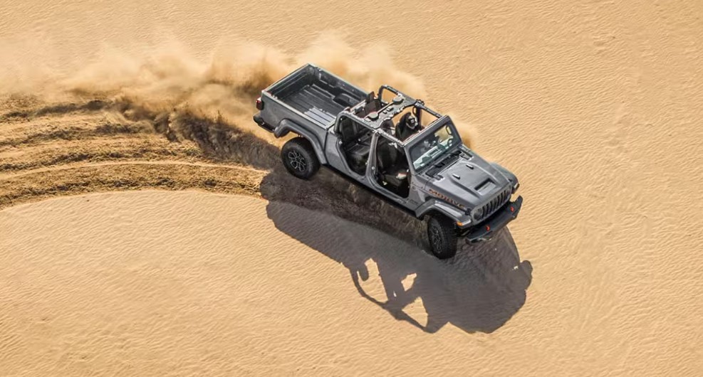 Powering the 2026 Jeep Gladiator is the trusted 3.6-liter Pentastar V6, delivering 285 horsepower and 260 lb-ft of torque to handle both workday demands and recreational outings. When properly equipped with certain four-wheel-drive setups, the Gladiator can tow as much as 7,700 pounds and support a payload of up to 1,720 pounds. Jeep’s four-wheel-drive systems — including the standard Command-Trac part-time 4x4 — offer low-range gearing designed to take on snow, mud, steep climbs, and sand. Off-road-oriented trims enhance capability further with reinforced structural components, skid plates, upgraded suspension systems, and all-terrain tires that prepare the Gladiator for demanding paths.