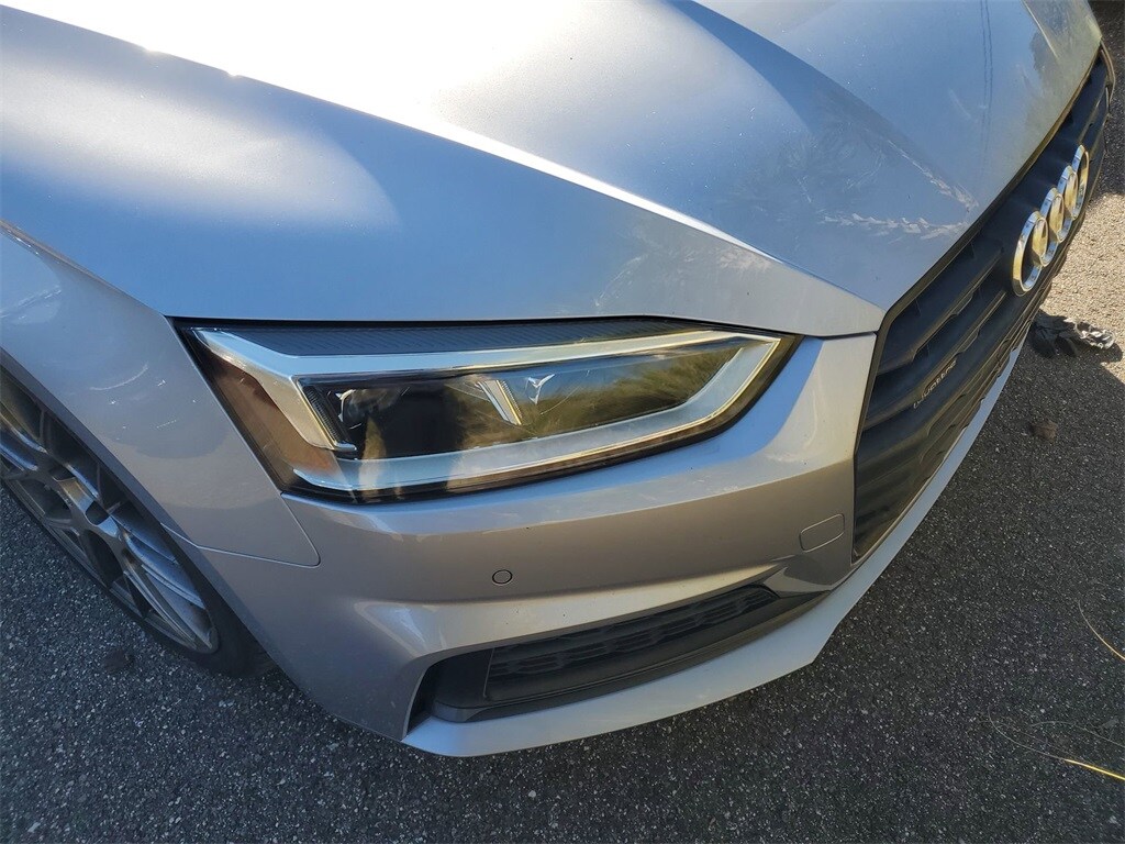 This vehicle comes equipped with 10 Speakers, 4-Wheel Disc Brakes, ABS brakes, Air Conditioning, Alloy wheels, AM/FM radio, Anti-whiplash front head restraints, Audi smartphone interface (Apple CarPlay/Android Auto), Auto-dimming Rear-View mirror, Automatic temperature control, Brake assist, Bumpers: body-color, Compass, Delay-off headlights, Driver door bin, Driver vanity mirror, Dual front impact airbags, Dual front side impact airbags, Electronic Stability Control, Emergency communication system: Audi connect CARE, Exterior Parking Camera Rear, Four wheel independent suspension, Front anti-roll bar, Front Bucket Seats, Front Center Armrest, Front dual zone A/C, Front fog lights, Front reading lights, Garage door transmitter: HomeLink, Heated door mirrors, Heated front seats, Heated Front Sport Seats, Illuminated entry, Knee airbag, Leather Seating Surfaces, Leather Shift Knob, Leather steering wheel, Low tire pressure warning, Occupant sensing airbag, Outside temperature display, Overhead airbag, Overhead console, Panic alarm, Passenger door bin, Passenger vanity mirror, Power adjustable front head restraints, Power door mirrors, Power driver seat, Power Liftgate, Power moonroof, Power passenger seat, Power steering, Power windows, Radio data system, Radio: Audi Sound System, Rain sensing wipers, Rear air conditioning, Rear anti-roll bar, Rear reading lights, Rear seat center armrest, Rear window defroster, Remote keyless entry, Security system, Speed control, Speed-sensing steering, Speed-Sensitive Wipers, Split folding rear seat, Steering wheel mounted audio controls, Tachometer, Telescoping steering wheel, Tilt steering wheel, Traction control, Trip computer, Turn signal indicator mirrors, Variably intermittent wipers, and Wheels: 18" x 8.5" 5-Arm-Dynamic Design .