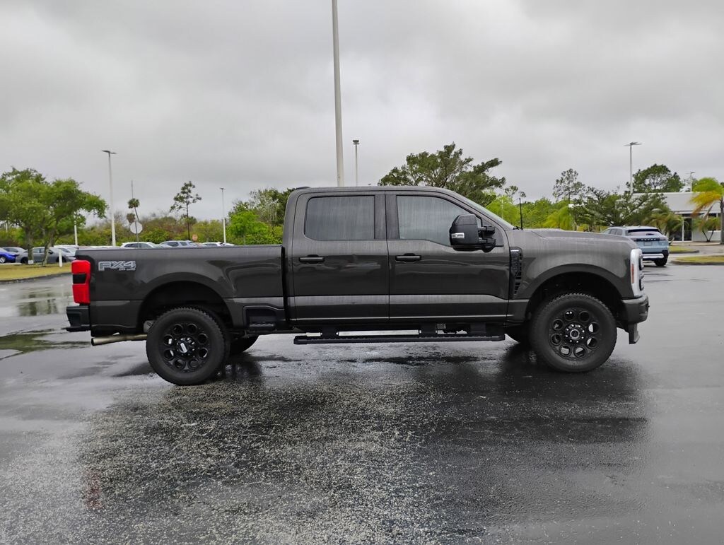 This vehicle comes equipped with Black Appearance Package (6" Ebony Black Angular Running Boards, Body Color Front & Rear Bumpers, Ebony Black Painted Front Grille Bars, Ebony Black Painted Mirror Caps, Rear Wheel Well Liners (Pre-Installed), Tough Bed Spray-In Bedliner, and Wheels: 20" Machined & Ebony Black High Gloss), F-250 >10K GVWR Package, FX4 Off-Road Package (Hill Descent Control, Off-Road Specifically Tuned Shock Absorbers, and Unique FX4 Off-Road Box Decal), Order Code 608A, 4WD, 4-Wheel Disc Brakes, ABS brakes, Adjustable pedals, Auto High-beam Headlights, Auto tilt-away steering wheel, Auto-dimming Rear-View mirror, Brake assist, Electronic Stability Control, Electronic-Locking w/3.73 Axle Ratio, Exterior Parking Camera Rear, Flow-Through Console, Front fog lights, Front Leather-Trimmed 40/Console/40 Seats, Fully automatic headlights, Garage door transmitter, Heated door mirrors, Heated front seats, Heated rear seats, Heated steering wheel, Memory seat, Navigation system: Connected Navigation (includes complimentary 1-year trial), Pedal memory, Power driver seat, Radio: B&O Sound System by Bang & Olufsen, SiriusXM Radio w/360L, Steering wheel mounted audio controls, SYNC 4 w/Enhanced Voice Recognition, Tailgate Step & Handle, Turn signal indicator mirrors, Ventilated front seats, 8 Speakers, Air Conditioning, Alloy wheels, AM/FM radio: SiriusXM with 360L, Automatic temperature control, Bumpers: chrome, Compass, Delay-off headlights, Driver door bin, Driver vanity mirror, Dual front impact airbags, Dual front side impact airbags, Emergency communication system: SYNC 4 911 Assist, Front anti-roll bar, Front Bucket Seats, Front Center Armrest, Front dual zone A/C, Front License Plate Bracket, Front reading lights, Illuminated entry, Leather steering wheel, Low tire pressure warning, Outside temperature display, Overhead airbag, Overhead console, Panic alarm, Passenger door bin, Passenger vanity mirror, Power door mirrors, Power passenger seat, Power steering, Power windows, Rain sensing wipers, Rear reading lights, Rear seat c