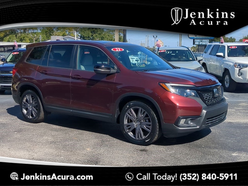 The price does not include tax, tag, license, an electronic filing fee of $449.00**, a private tag agency fee of $199.00**, and a predelivery service charge of $1199.00** **This charge represents costs and profit to the dealer for items such as inspecting, cleaning, and adjusting vehicles, as well as preparing documents related to the sale. * EPA-estimate metric: these are contingent on ideal conditions within a lab. Real-world situations such as carrying passengers or cargo, using climate control, driving style, and ambient temperatures can affect actual metrics. 20/25 City/Highway MPG TEXT OR CALL 352-553-9840 NOW TO GET IN TOUCH WITH BRANDON BONILLA IN SALES, TEXT OR CALL 407-715-4652 NOW TO GET IN TOUCH WITH PEDRO CARO IN SALES *SE HABLA ESPAN OL*, 7 Speakers, AM/FM radio: SiriusXM, Four wheel independent suspension, Memory seat, Power driver seat, Power Liftgate, Power moonroof, Power steering, Power windows, Radio data system, Radio: 215-Watt Audio System w/7 Speakers, Remote keyless entry, Speed-sensing steering, Steering wheel mounted audio controls, Traction control. CARFAX One-Owner. Deep Scarlet Pearl 2021 Honda Passport EX-L FWD 9-Speed Automatic 3.5L V6 24V SOHC i-VTEC