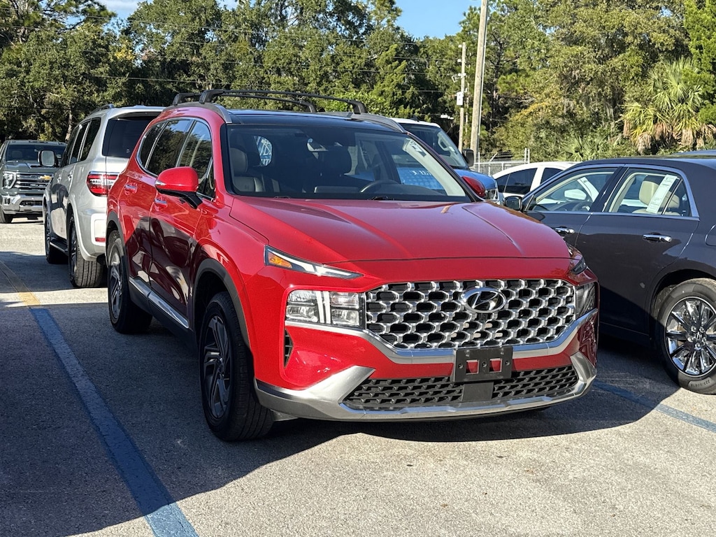 Calypso Red 2023 Hyundai Santa Fe SEL AWD 8-Speed Automatic with SHIFTRONIC 2.5L I4 AWD, Black Artificial Leather.