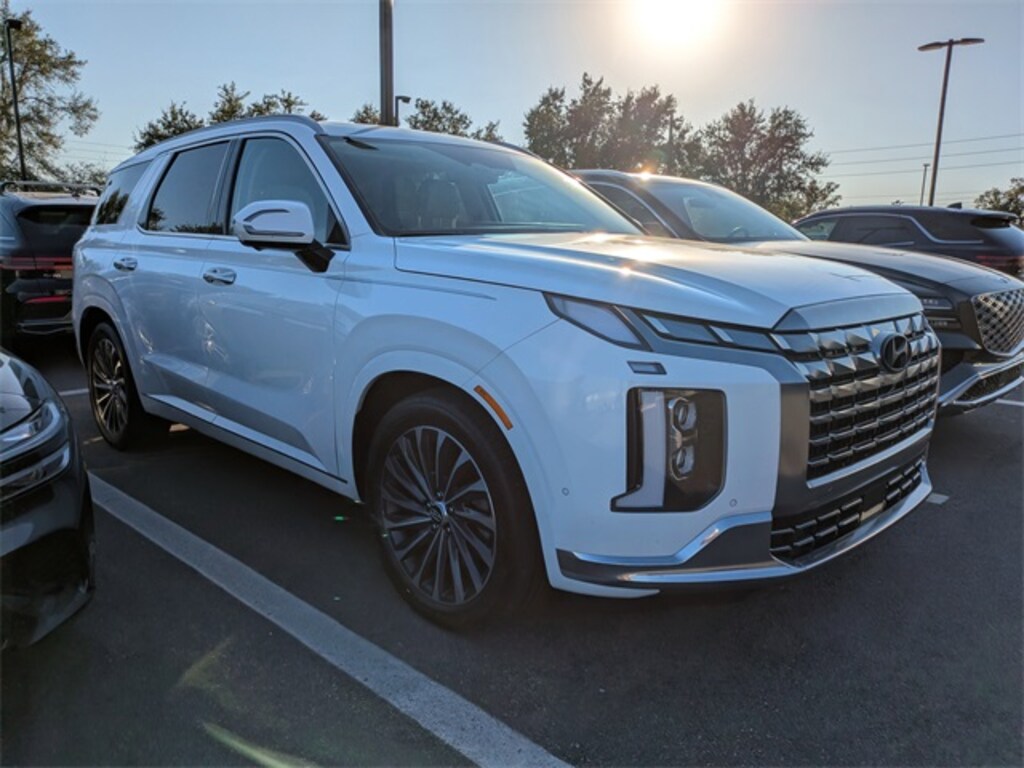The price does not include tax, tag, license, an electronic filing fee of $449.00**, a private tag agency fee of $199.00**, and a predelivery service charge of $1199.00** **This charge represents costs and profit to the dealer for items such as inspecting, cleaning, and adjusting vehicles, as well as preparing documents related to the sale.* EPA-estimate metric: these are contingent on ideal conditions within a lab. Real-world situations such as carrying passengers or cargo, using climate control, driving style, and ambient temperatures can affect actual metrics. 19/24 City/Highway MPG Hyper White 2024 Hyundai Palisade Calligraphy AWD 8-Speed Automatic with SHIFTRONIC V6