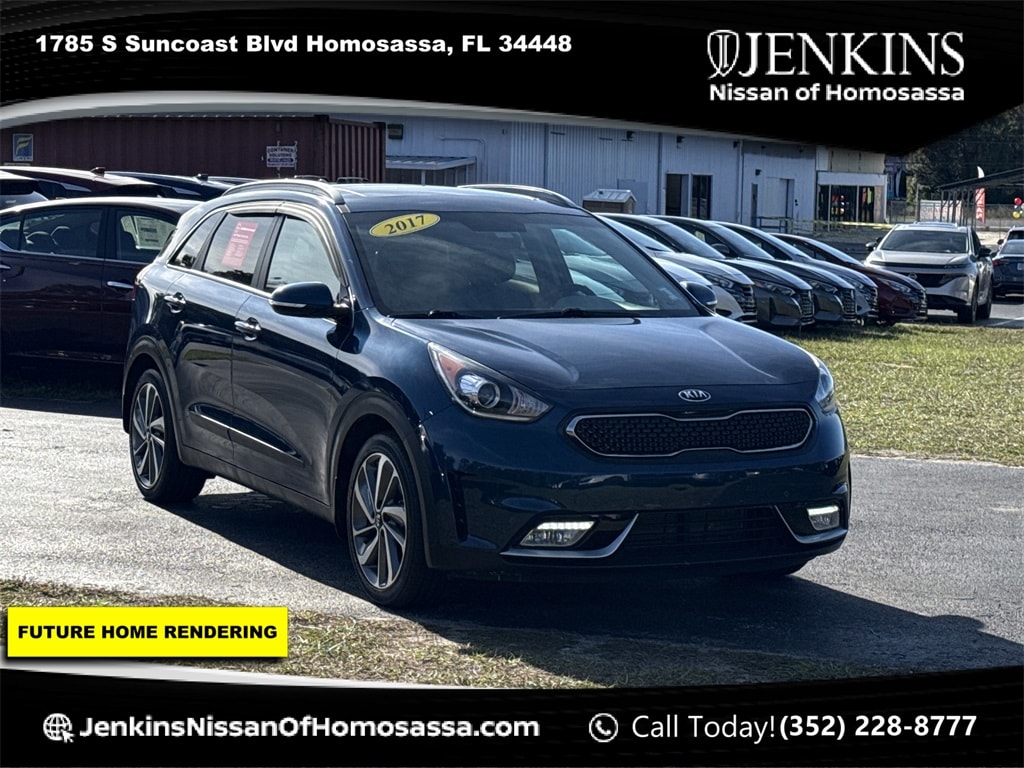 Deep Cerulean Odometer is 63013 miles below market average! 46/40 City/Highway MPG 2017 Kia Niro Touring FWD Dual Clutch 6-Speed Automatic 1.6L I4 Jenkins has been doing business for over 50 years and we appreciate your business! Our used cars undergo an extensive Detail and Reconditioning Process, and are thoroughly inspected to meet the criteria for our exclusive warranty. Buy with confidence at Jenkins Nissan of Homosassa! We spend an average of $2779 in Detail and Reconditioning on every used car. The Reconditioning and Maintenance Repair History is Available Upon Request. We don't just inspect, we fix :)